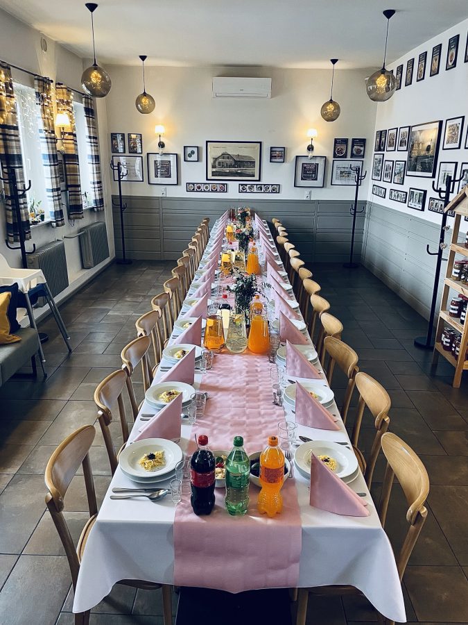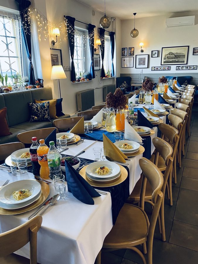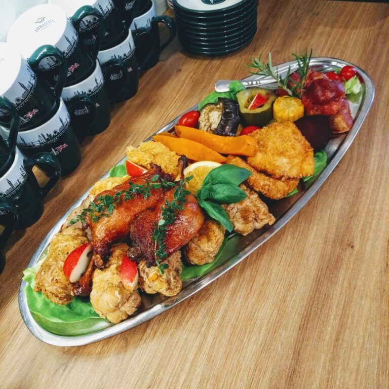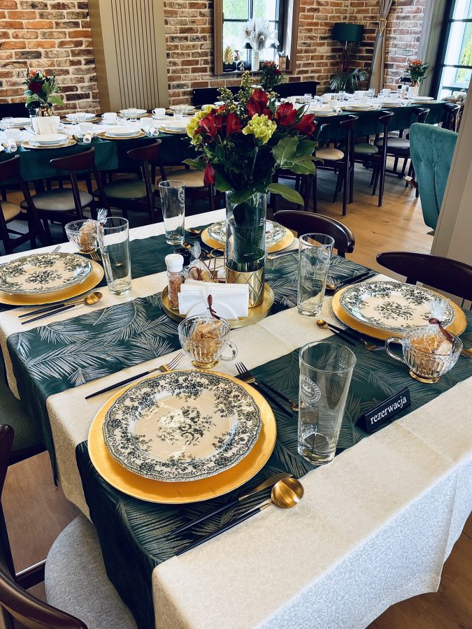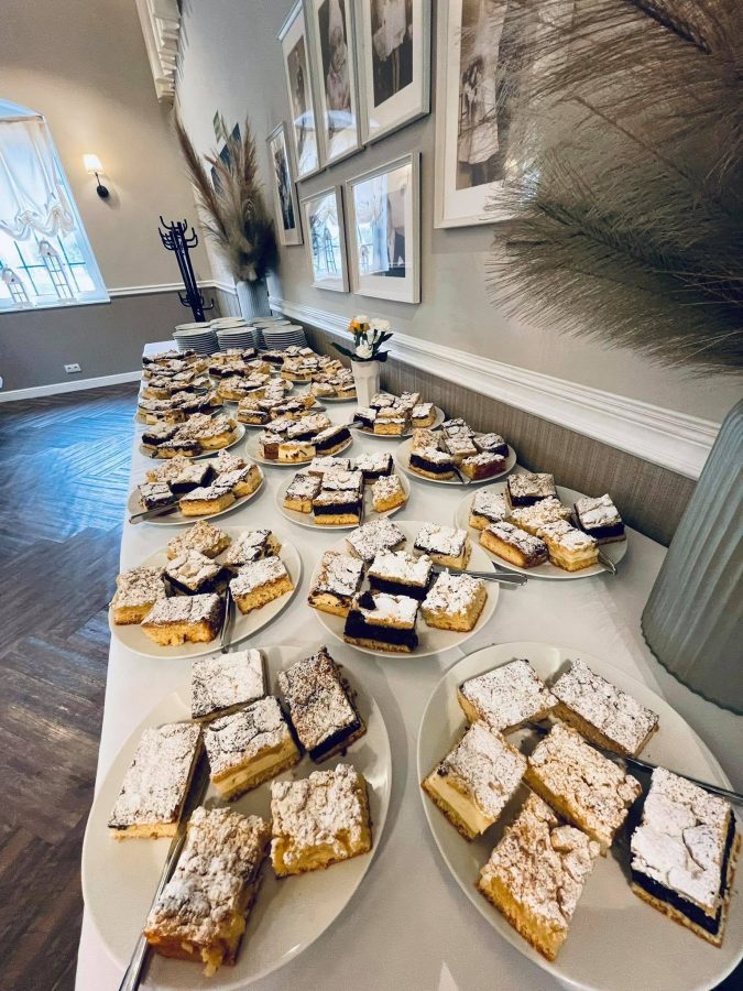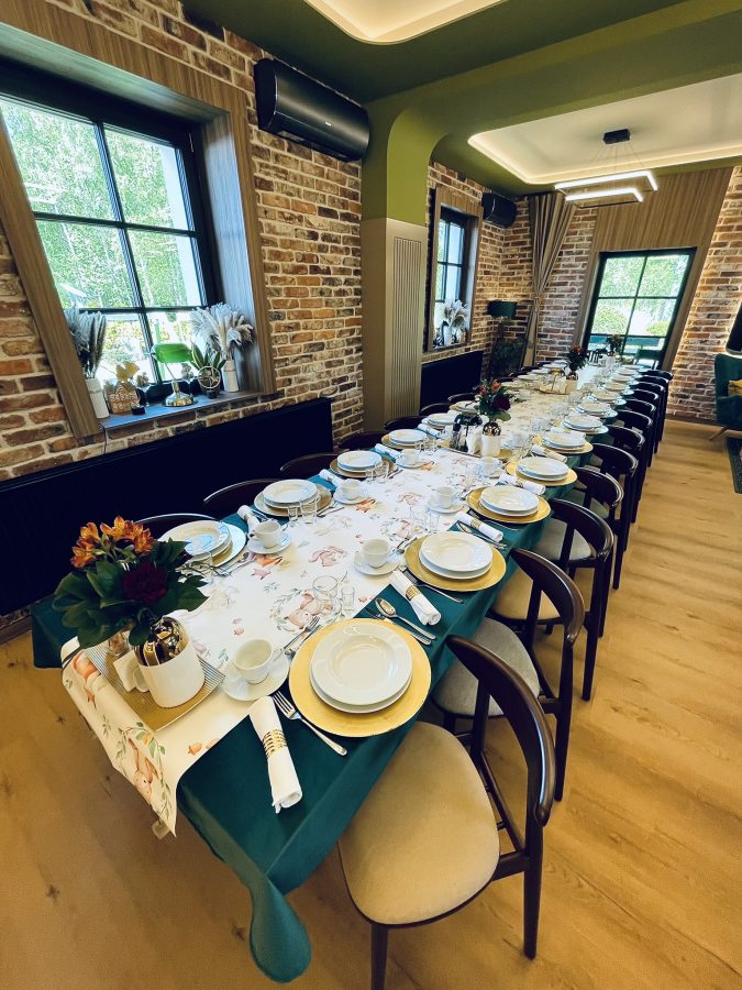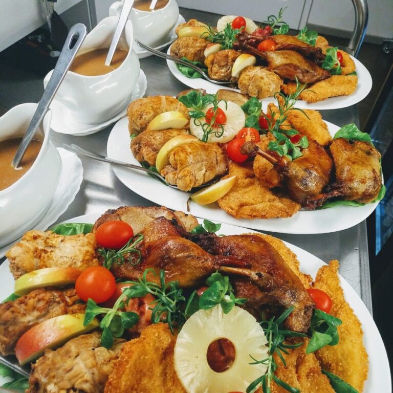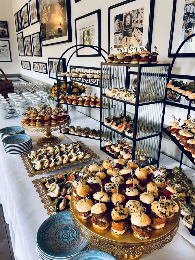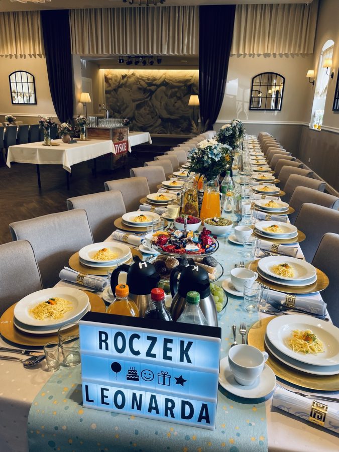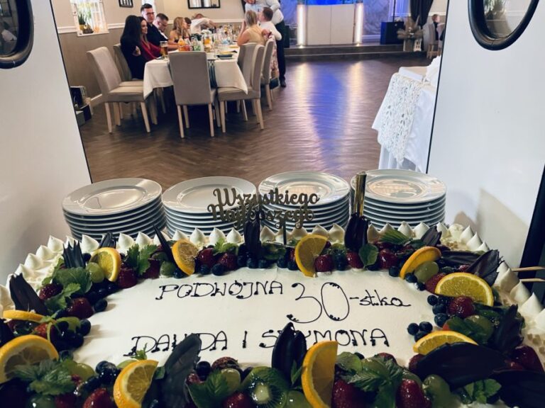 Galeria Sala restauracyjna do 40 osób Sala imprezowa do 100 osób Sala konferencyjna do 60 osób Ogród Karczmy Nasze własne słodkie i słone stoły z oferty imprezowej Dania serwowane w restauracji Dania imprezowe Ciasta i torty imprezowe Catering