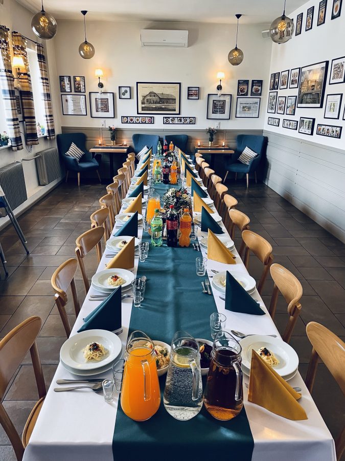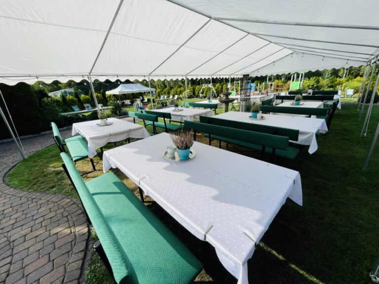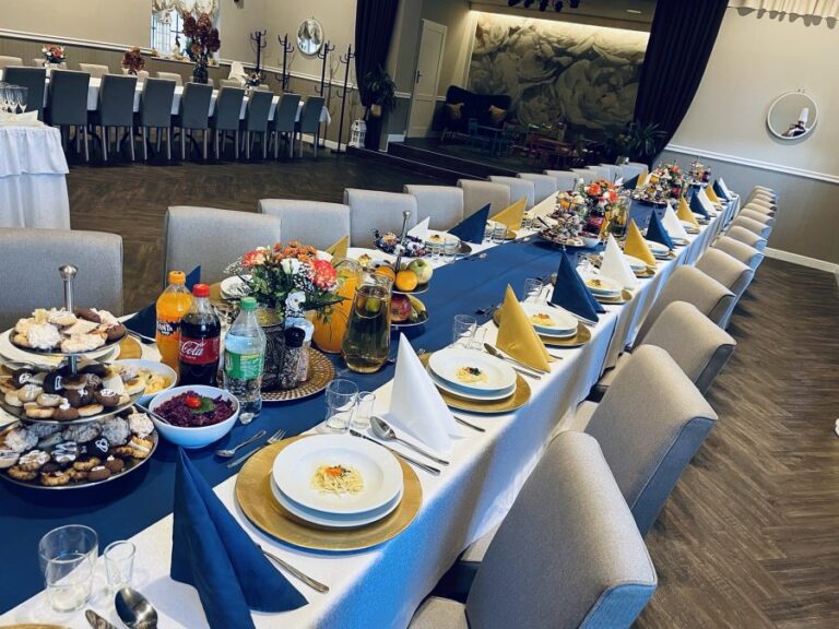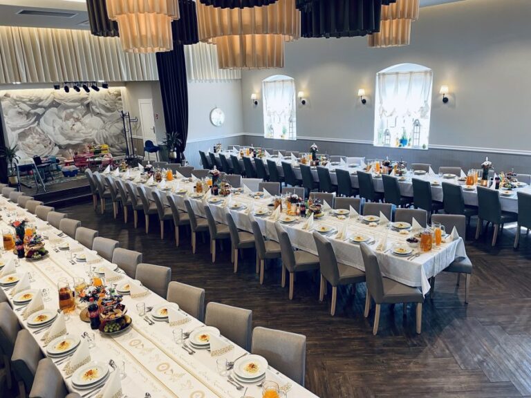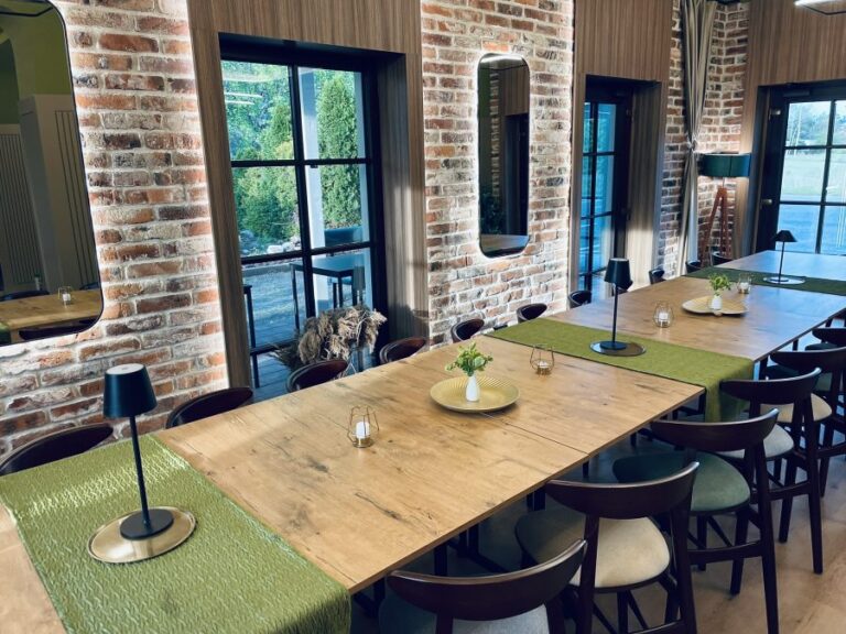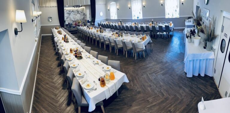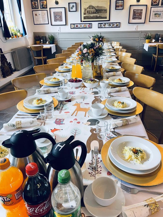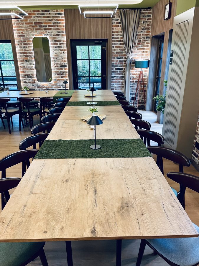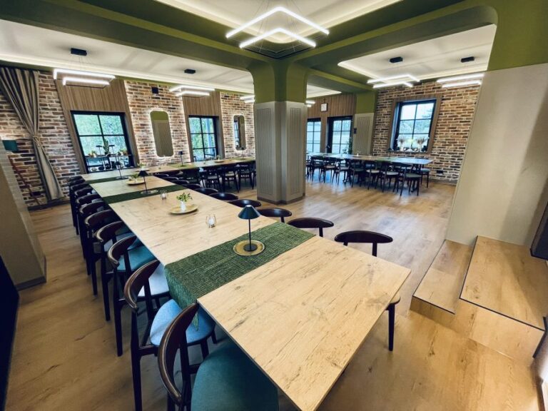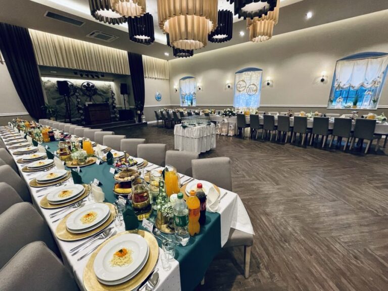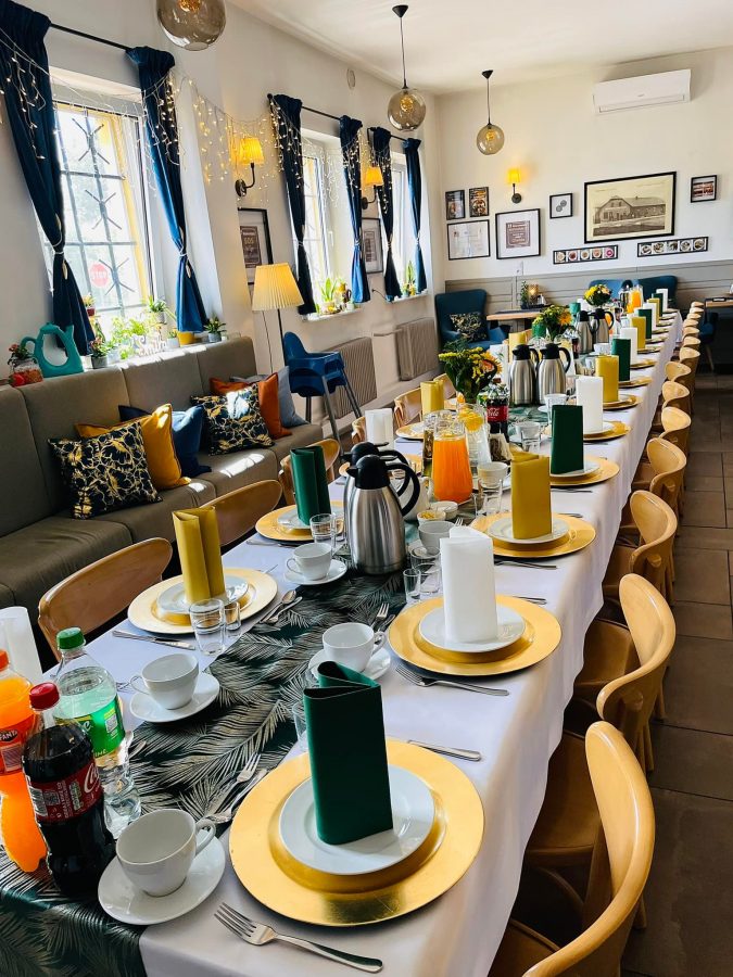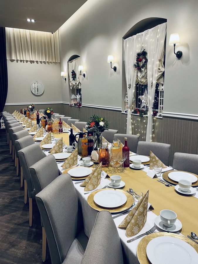 Galeria Sala restauracyjna do 40 osób Sala imprezowa do 100 osób Sala konferencyjna do 60 osób Ogród Karczmy Nasze własne słodkie i słone stoły z oferty imprezowej Dania serwowane w restauracji Dania imprezowe Ciasta i torty imprezowe Catering