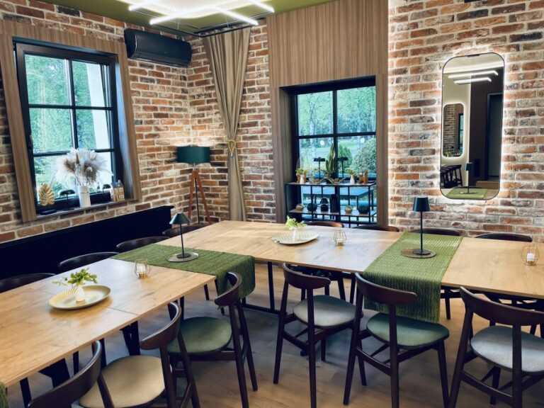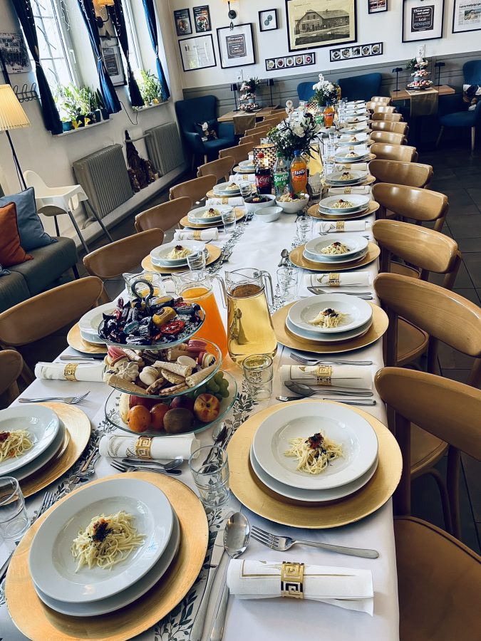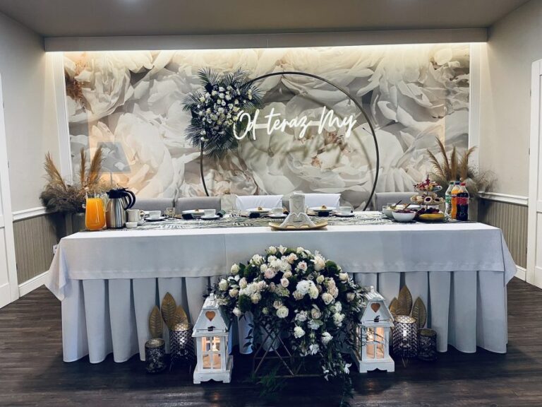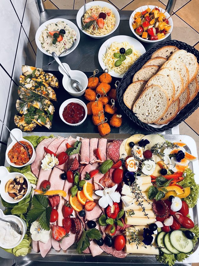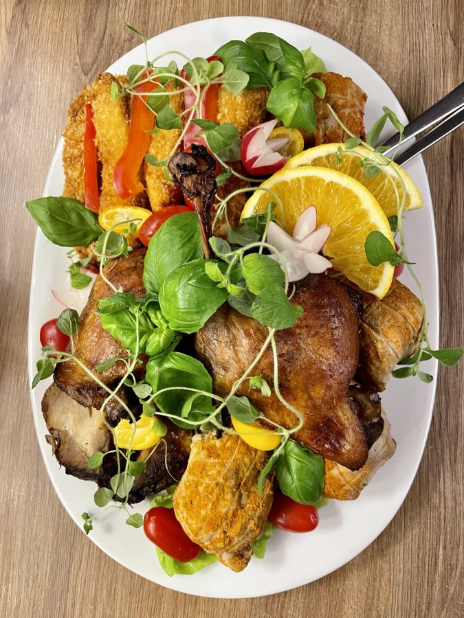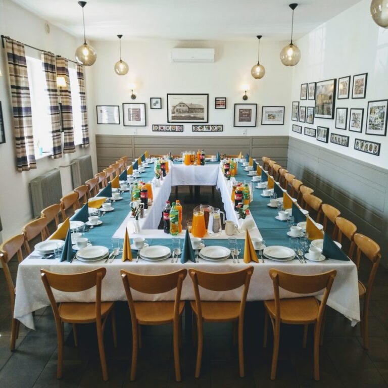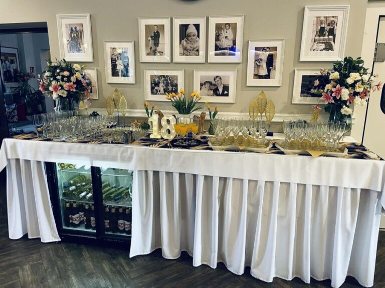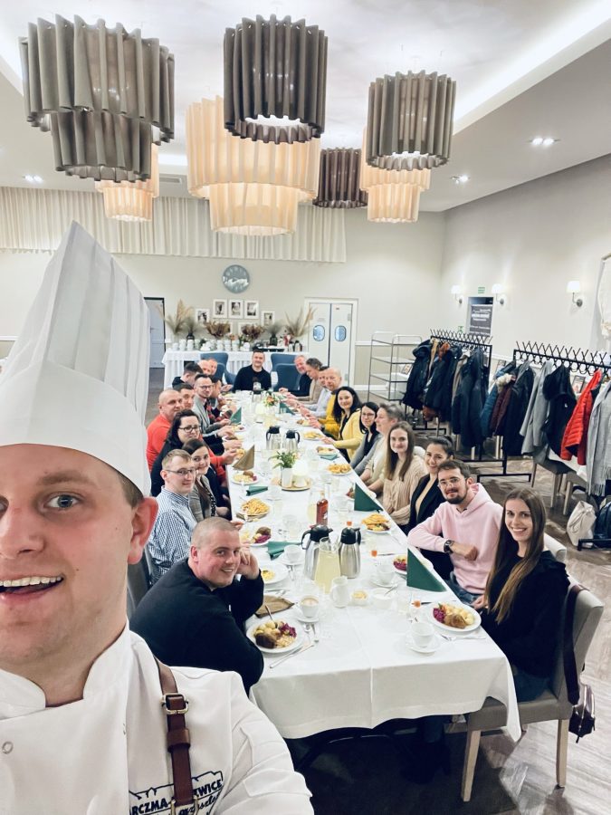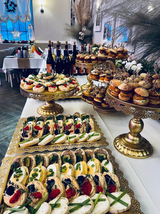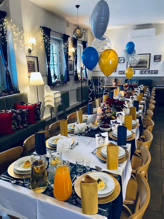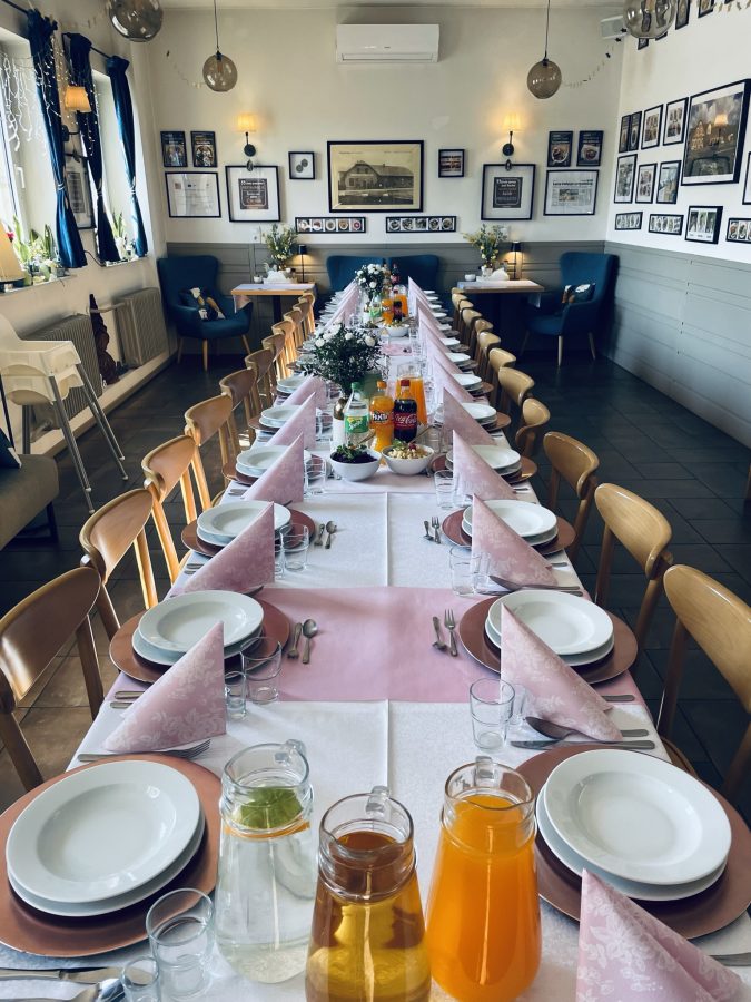 Galeria Sala restauracyjna do 40 osób Sala imprezowa do 100 osób Sala konferencyjna do 60 osób Ogród Karczmy Nasze własne słodkie i słone stoły z oferty imprezowej Dania serwowane w restauracji Dania imprezowe Ciasta i torty imprezowe Catering