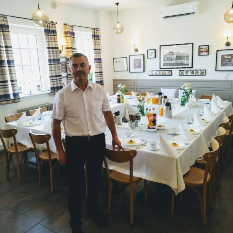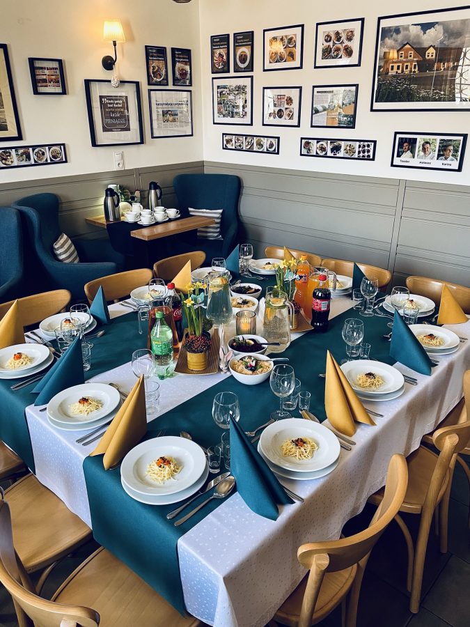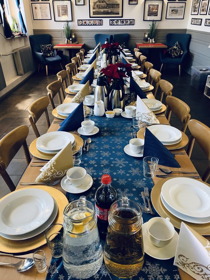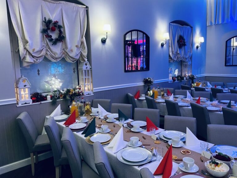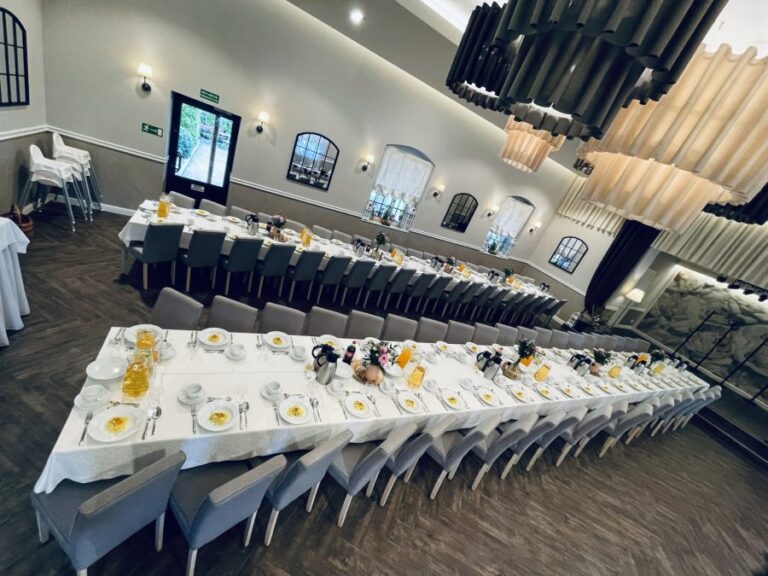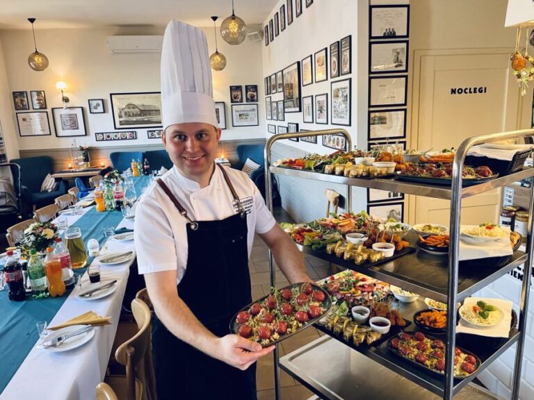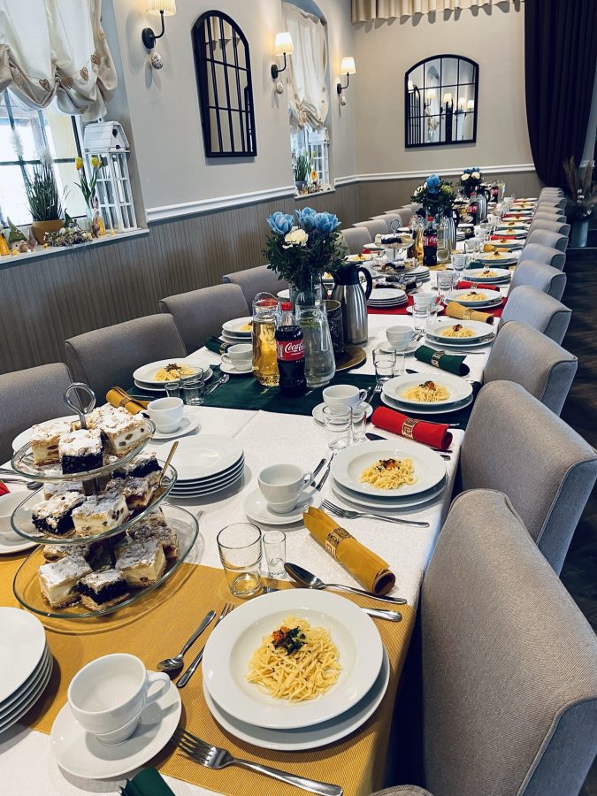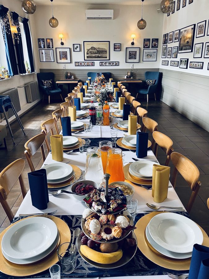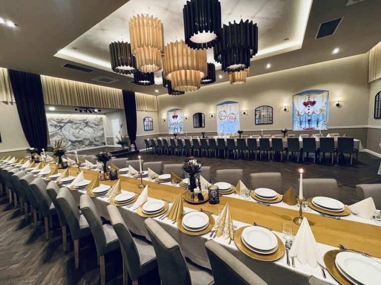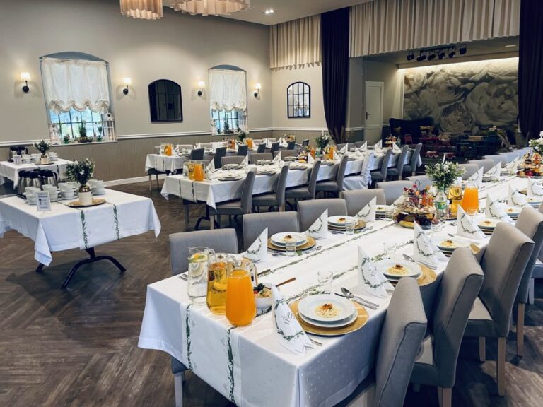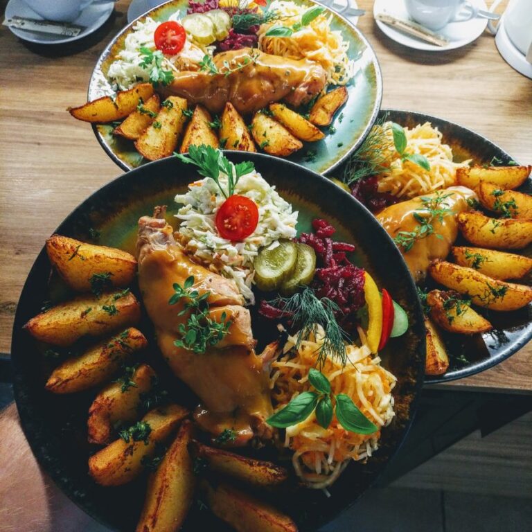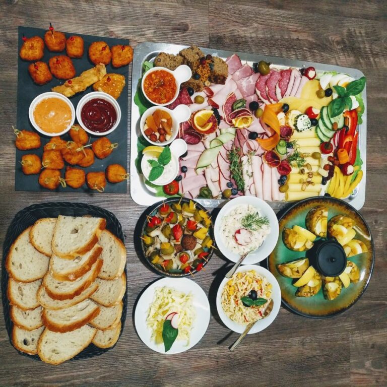 Galeria Sala restauracyjna do 40 osób Sala imprezowa do 100 osób Sala konferencyjna do 60 osób Ogród Karczmy Nasze własne słodkie i słone stoły z oferty imprezowej Dania serwowane w restauracji Dania imprezowe Ciasta i torty imprezowe Catering