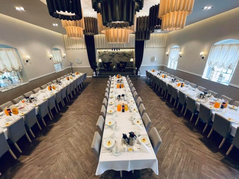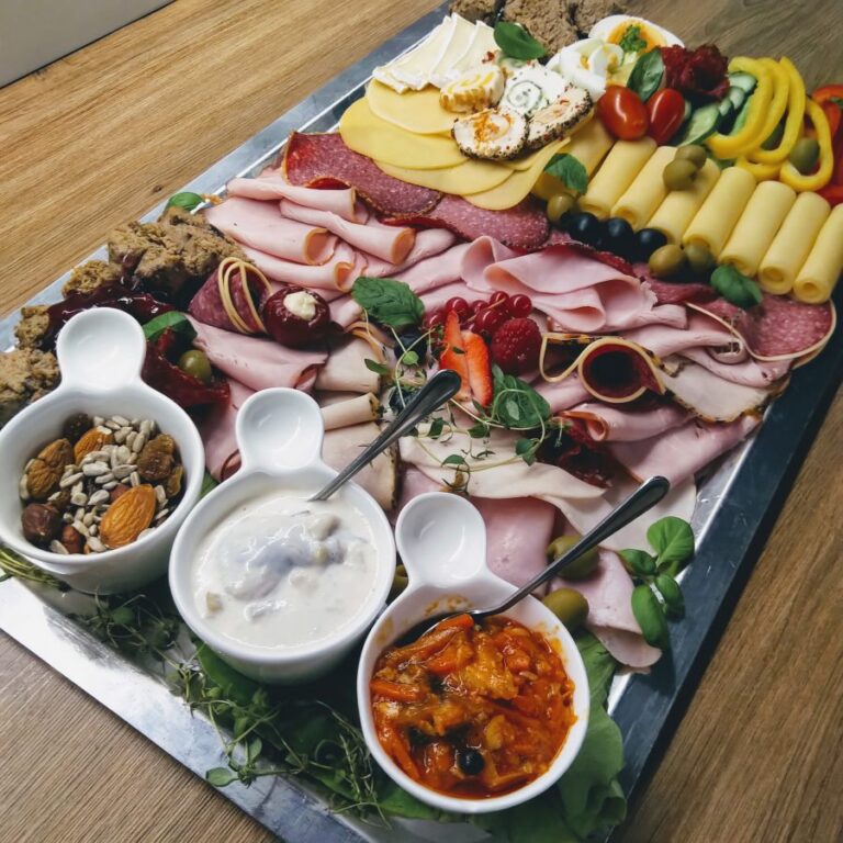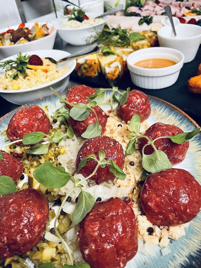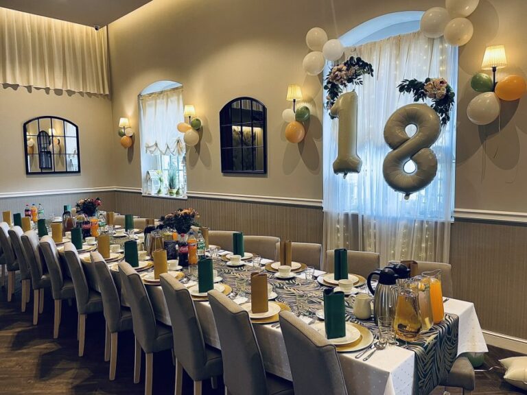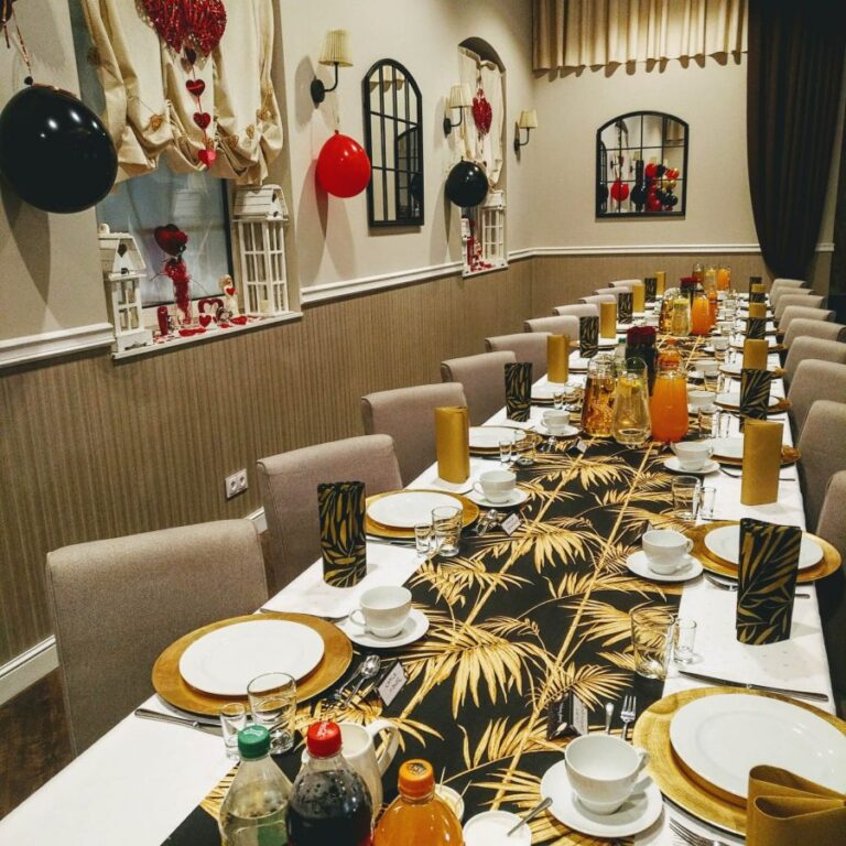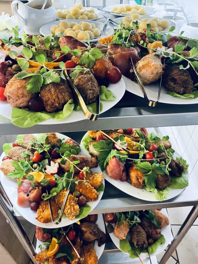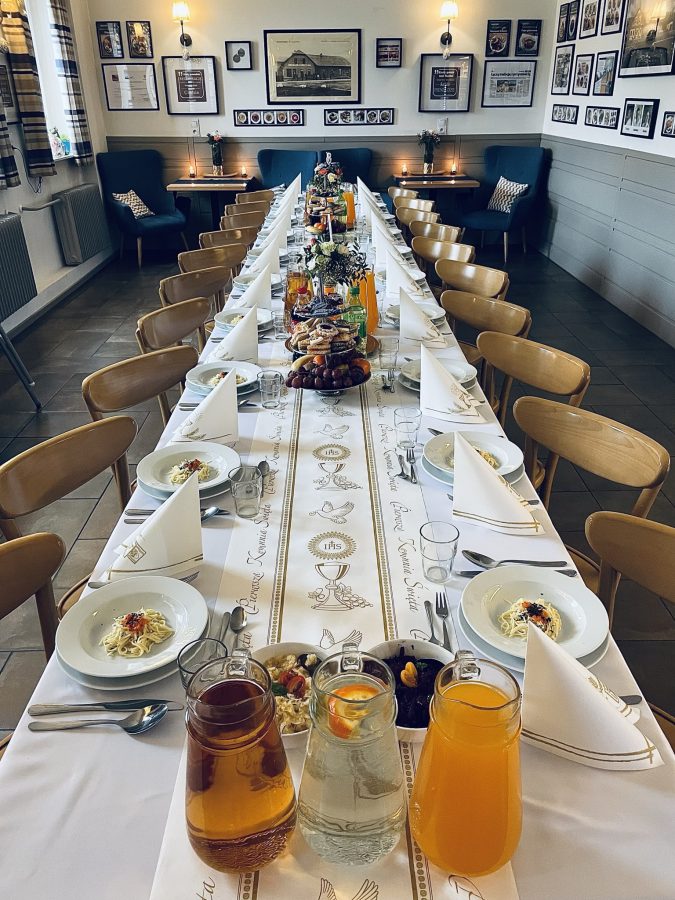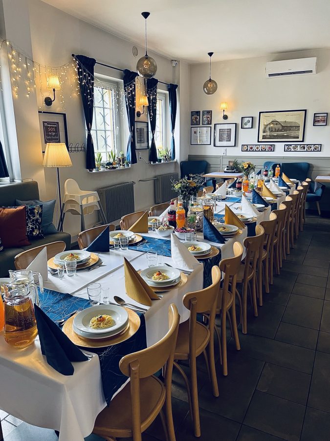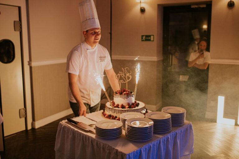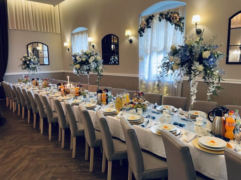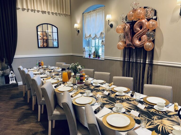 Galeria Sala restauracyjna do 40 osób Sala imprezowa do 100 osób Sala konferencyjna do 60 osób Ogród Karczmy Nasze własne słodkie i słone stoły z oferty imprezowej Dania serwowane w restauracji Dania imprezowe Ciasta i torty imprezowe Catering