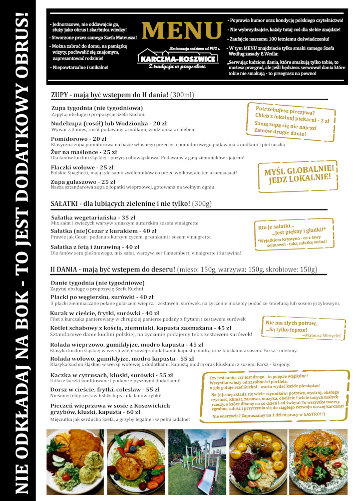 Menu Na naszym facebooku oraz instagramie i w relacjach znajdziecie zawsze informacje o daniu dnia/tygodnia